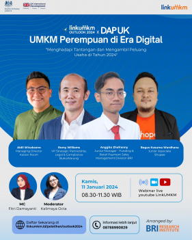 LINKUMKM OUTLOOK 2024 : PELUANG DAN TANTANGAN UMKM PEREMPUAN DI ERA DIGITALHalo Sobat LinkUMKM, bagaimana kabarnya? Semoga tetap semangat ya!