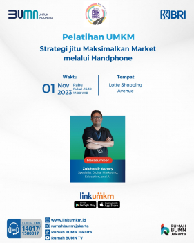 Rumah BUMN Jakarta kembali mengadakan pelatihan UMKM gratis dengan tema Strategi jitu Maksimalkan Market melalui Handphone