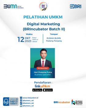Rumah BUMN Padang Panjang mengadakan Pelatihan Digital Marketing BRIncubator Batch II Kelas B. Menghadirkan pakar dibidangnya demi kemajuan UMKM Indonesia.