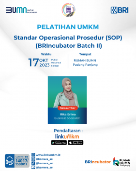 Rumah BUMN Padang Panjang mengadakan Pelatihan Standar Operasional Prosedur BRIncubator Batch II Kelas A. Menghadirkan pakar dibidangnya demi kemajuan UMKM Indonesia.