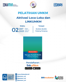 Rumah BUMN Padang Panjang mengadakan Pelatihan Aktivasi Loca Loka dan LINKUMKM. Menghadirkan pakar dibidangnya demi kemajuan UMKM Indonesia.