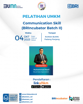 Rumah BUMN Padang Panjang mengadakan Pelatihan Communication Skill BRIncubator BatchII. Menghadirkan pakar dibidangnya demi kemajuan UMKM Indonesia.