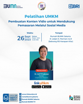Rumah BUMN Jakarta mengundang UMKM kamu untuk merasakan perubahan signifikan dalam bisnis dengan mengikuti pelatihan Pembuatan Konten Video Untuk Mendukung Pemasaran Melalui Sosial MediaLihat Detail