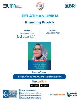 Nah, pada kesempatan kali ini Rumah BUMN mengajak kamu untuk ikut serta dalam pelatihan Tips Branding Produk Praktis di Market Online Agar Diminati Konsumen yang dimana akan memberikan pemahaman mendalam mengenai konsep dasar branding, serta membuka wawasan baru tentang pengenalan merek di kalangan konsumen online!