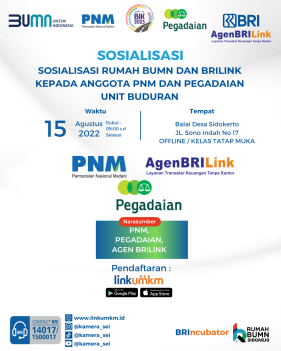 SOSIALISASI RUMAH BUMN DAN BRILINK KEPADA ANGGOTA PNM DAN PEGADAIAN UNIT BUDURAN