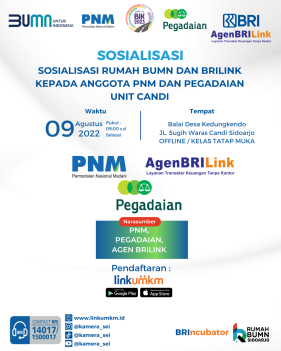 SOSIALISASI RUMAH BUMN DAN BRILINK KEPADA ANGGOTA PNM DAN PEGADAIAN UNIT CANDI