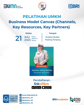 Rumah BUMN Padang Panjang mengadakan Pelatihan Business Model Canvas Channels Key Resources Key Partners. Menghadirkan pakar dibidangnya demi kemajuan UMKM Indonesia.