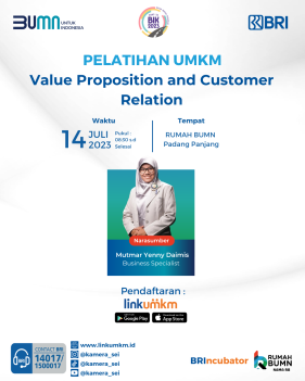 Rumah BUMN Padang Panjang mengadakan Pelatihan Value Proposition and Customer Relation. Menghadirkan pakar dibidangnya demi kemajuan UMKM Indonesia.