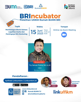 Rumah BUMN Padang Panjang mengadakan Pelatihan Legalitas Usaha BRIncubator. Menghadirkan pakar dibidangnya demi kemajuan UMKM Indonesia.