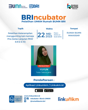Rumah BUMN Makassar Berkolaborasi dengan Komunitas Jarum Benang Makassar / Lamenda Dress Maker akan melangsungkan kegiatan Pelatihan dengan tema