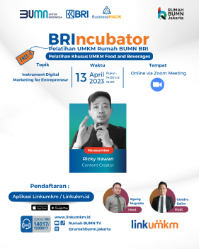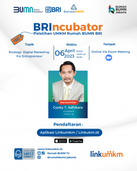 Rumah BUMN Jakarta berkolaborasi dengan UCOACH Indonesia menghadirkan program webinar Business Hack setiap hari kamis pukul 14.00 – 16.00 WIB .Webinar kali ini akan membahas mengenai strategi bisnis yang tepat untuk mencapai keberhasilan jangka panjang. Tentu nya akan mendapatkan wawasan serta tips & trick membangun bisnis yang eksis dan laris manis langsung dari para ahli nya!