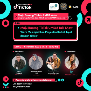 Dalam rangka mendukung pemberdayaan dan digitalisasi UMKM tanah air, TikTok menyelenggarakan program pelatihan UMKM bertajuk MajuBarengTikTok (MBT).