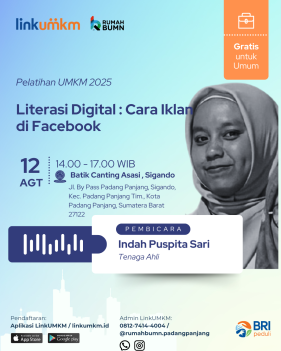 Rumah BUMN Padang Panjang mengadakan Literasi Digital Cara Iklan di Facebook. Menghadirkan pakar dibidangnya demi kemajuan UMKM Indonesia.