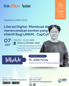 Rumah BUMN Padang Panjang mengadakan Literasi Digital Membuat dan merencanakan konten yang efektif Bagi UMKM CapCut Menghadirkan pakar dibidangnya demi kemajuan UMKM Indonesia.
