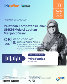 Rumah BUMN Padang Panjang mengadakan Pelatihan Kompetensi Pelaku UMKM Melalui Latihan Menjahit Dasar. Menghadirkan pakar dibidangnya demi kemajuan UMKM Indonesia.