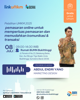 Rumah BUMN Padang Panjang mengadakan Menentukan Keputusan Re Marketing Untuk Berbagai Segmen Konsumen. Menghadirkan pakar dibidangnya demi kemajuan UMKM Indonesia.