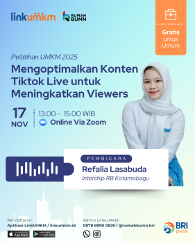 Judul Pelatihan :Literasi Bisnis SCALE UP UMKM, Kepemimpinan, Branding, dan Strategi Bisnis Yang tumbuh berkelanjutan