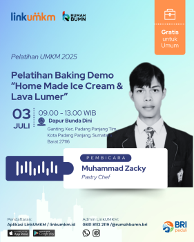 Rumah BUMN Padang Panjang mengadakan Pelatihan Baking Demo Home Made Ice Cream dan Lava Lumer. Menghadirkan pakar dibidangnya demi kemajuan UMKM Indonesia.