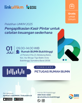 Rumah BUMN Padang Panjang mengadakan Pelatihan Penyusunan Laporan Laba Rugi Pada UMKM. Menghadirkan pakar dibidangnya demi kemajuan UMKM Indonesia.