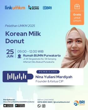 Kalian pecinta kuliner Korea dan ingin belajar bikin Korean Milk Donut yang lagi viral itu? Yuk ikuti pelatihan seru ini bareng Nina Yuliani Mardiyah, Founder & Ketua CIP!