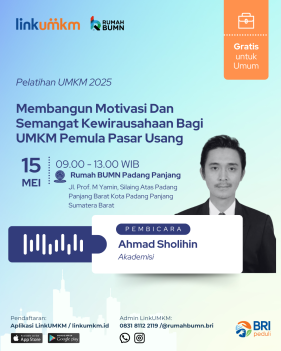 Rumah BUMN Padang Panjang mengadakan Pelatihan Membangun Motivasi Dan Semangat Kewirausahaan Bagi UMKM Pemula Pasar Usang. Menghadirkan pakar dibidangnya demi kemajuan UMKM Indonesia.