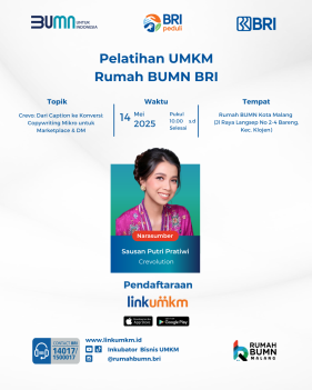 Tempat : Rumah BUMN Bandung Jl. Jurang No.50, Pasteur, Kec. Sukajadi, Kota BandungLihat Detail