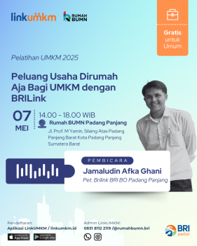 Judul Pelatihan : Pelatihan Peluang Usaha Dirumah Aja Bagi UMKM dengan BRILink