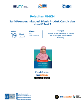 Judul Pelatihan : JahitPreneur: Inkubasi Bisnis Produk Cantik dan Kreatif Sesi 3