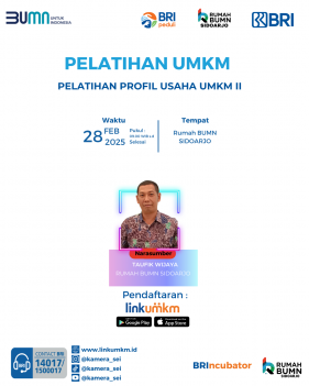 Tempat : Rumah BUMN Bandung Jl. Jurang No. 50, Pasteur, Kec. Sukajadi, Kota BandungLihat Detail