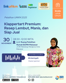 Tempat: Jl.Sam Ratulangi No.30 (Lt. 2 Rumah BUMN Makassar)