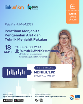 Tempat : Rumah BUMN Bandung Jl. Jurang No. 50, Pasteur, Kec. Sukajadi, Kota Bandung, Jawa Barat 40161.Lihat Detail