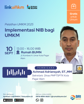 Rumah BUMN Padang Panjang mengadakan Pelatihan Literasi Dasar Cara Menjadi Pengusaha yang Adaptif untuk Bisnis Maju. Menghadirkan pakar dibidangnya demi kemajuan UMKM Indonesia.