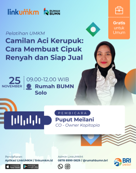 Tempat: Jl.Sam Ratulangi No.30 (Lt. 2 Rumah BUMN Makassar)