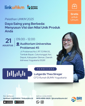 Pelatihan agar UMKM dapat mengimplementasikan mengenai ekspor berbasis digital serta menjadi produk yang kuat dan menjadikan pasar yang tepat