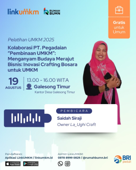 Tema Pelatihan: Kolaborasi PT Pegadaian "Pembinaan UMKM": Menganyam Budaya Merajut Bisnis : Inovasi Crafting Bosara Untuk UMKM.