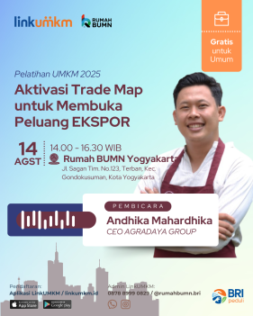 Pelatihan terkait penggunaan trade map untuk mencari buyer dari luar negri sehingga dapat meningkatkan peluang UMKM untuk membuka pasar EKSPOR.