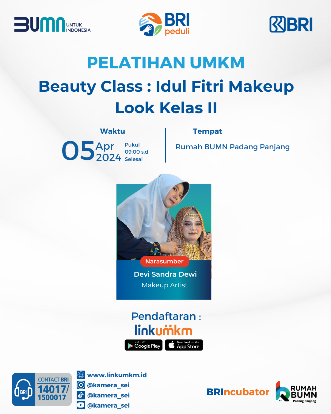 Rumah BUMN Padang Panjang mengadakan Pelatihan Beauty Class Idul Fitri Makeup Look Kelas II. Menghadirkan pakar dibidangnya demi kemajuan UMKM Indonesia.