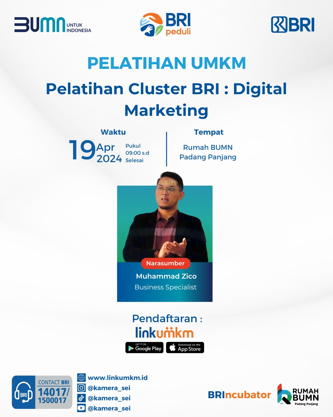 Rumah BUMN Padang Panjang mengadakan Pelatihan Cluster BRI Digital Marketing. Menghadirkan pakar dibidangnya demi kemajuan UMKM Indonesia.
