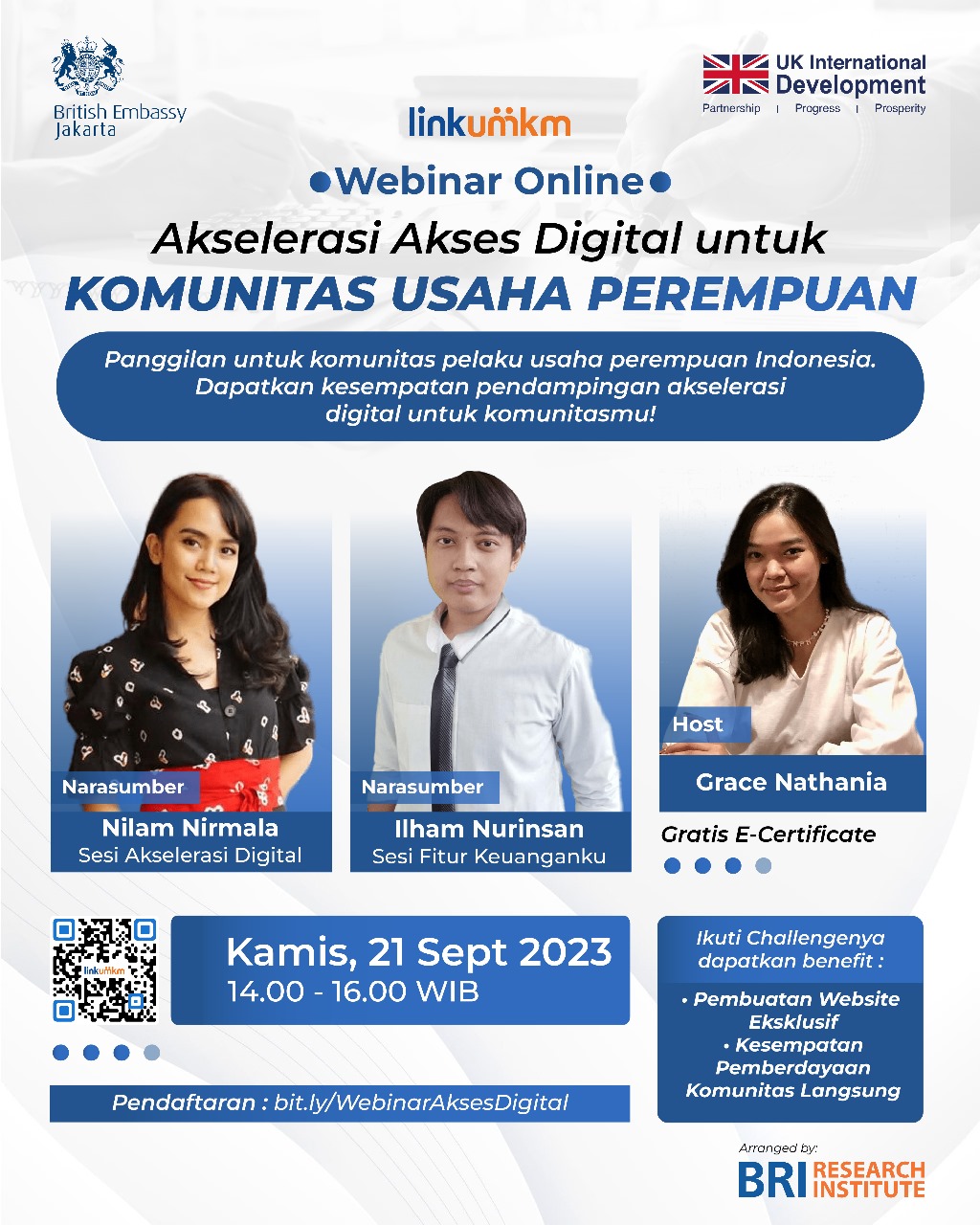 Maka, BRI Research Institute menginisiasi untuk menghadirkan Webinar Online Akselerasi Akses Digital Untuk Kominitas Usaha Perempuan Perempuan - “Mendorong Inklusi Digital: Peran UMKM Perempuan dalam Ekonomi Digital”.