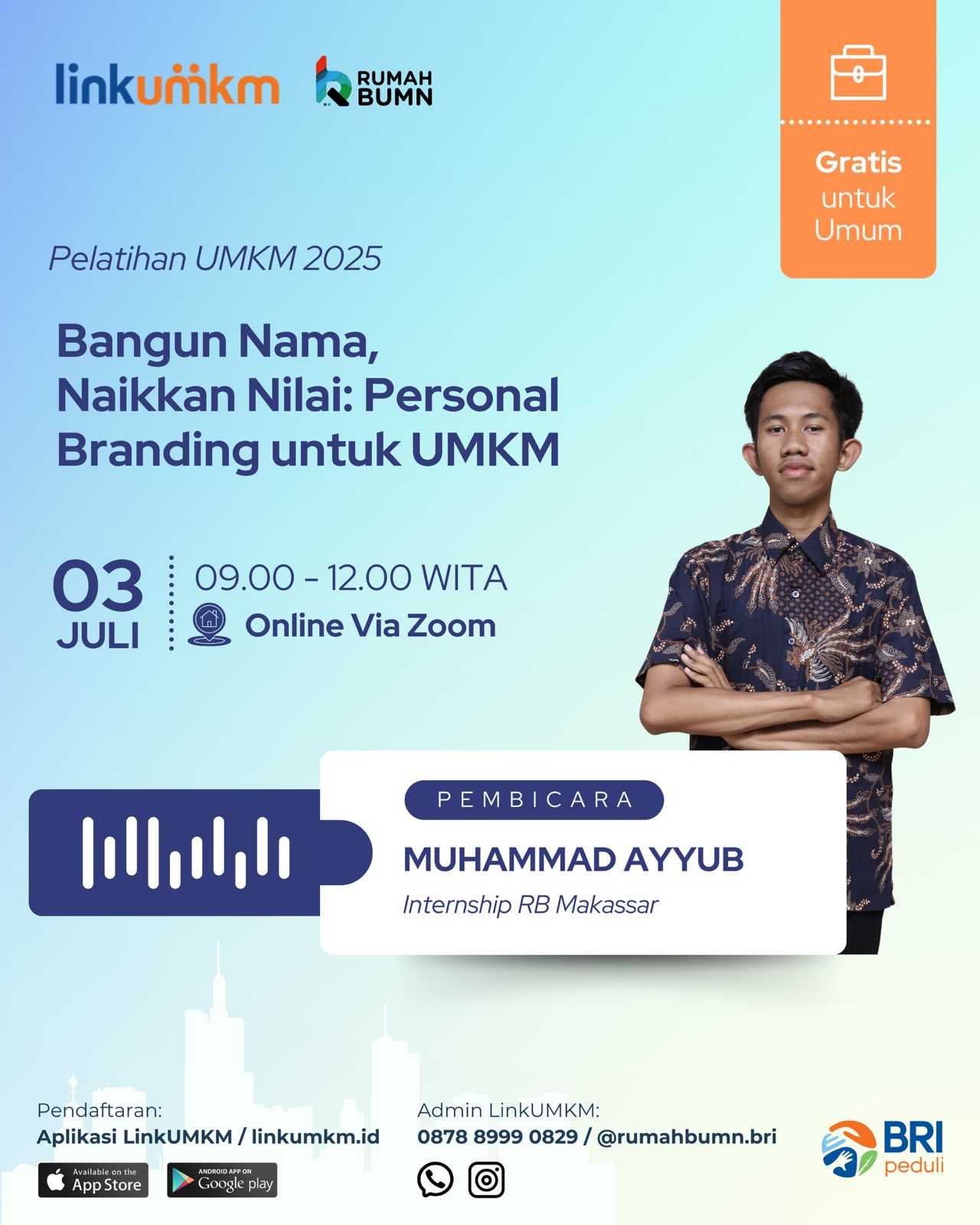 Tema Pelatihan: BANGUN NAMA NAIKKAN NILAI PERSONAL BRANDING UNTUK UMKM.