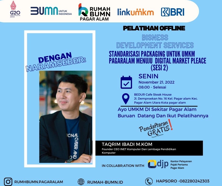 Bisness Development Servises "Standarisasi Packaging UMKM Pagaralam Untuk Menuju Digital Market Pleace (Sesi 2)"