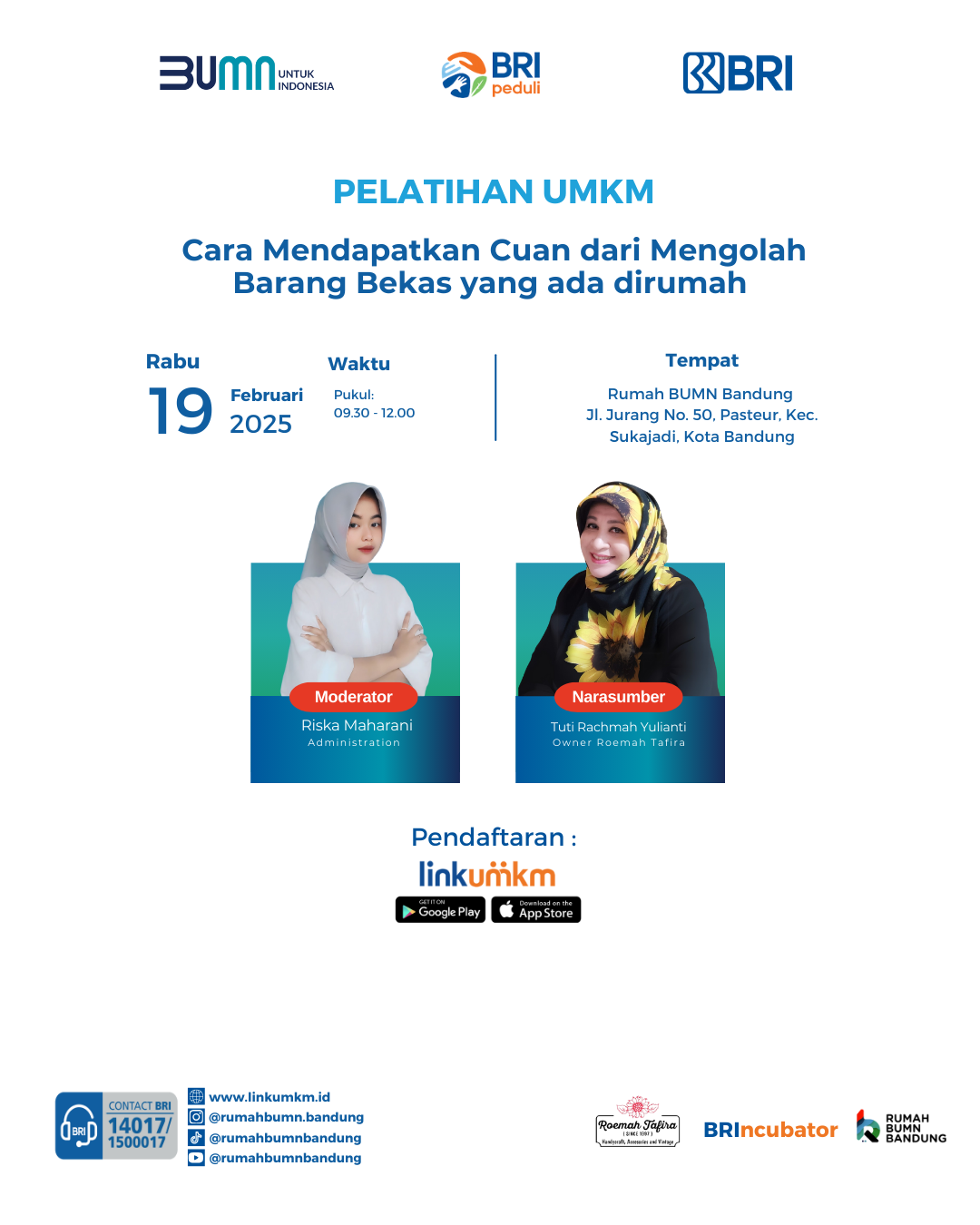 Tempat : Rumah BUMN Bandung, Jl. Jurang No.50, Pasteur, Kec. Sukajadi, Bandung