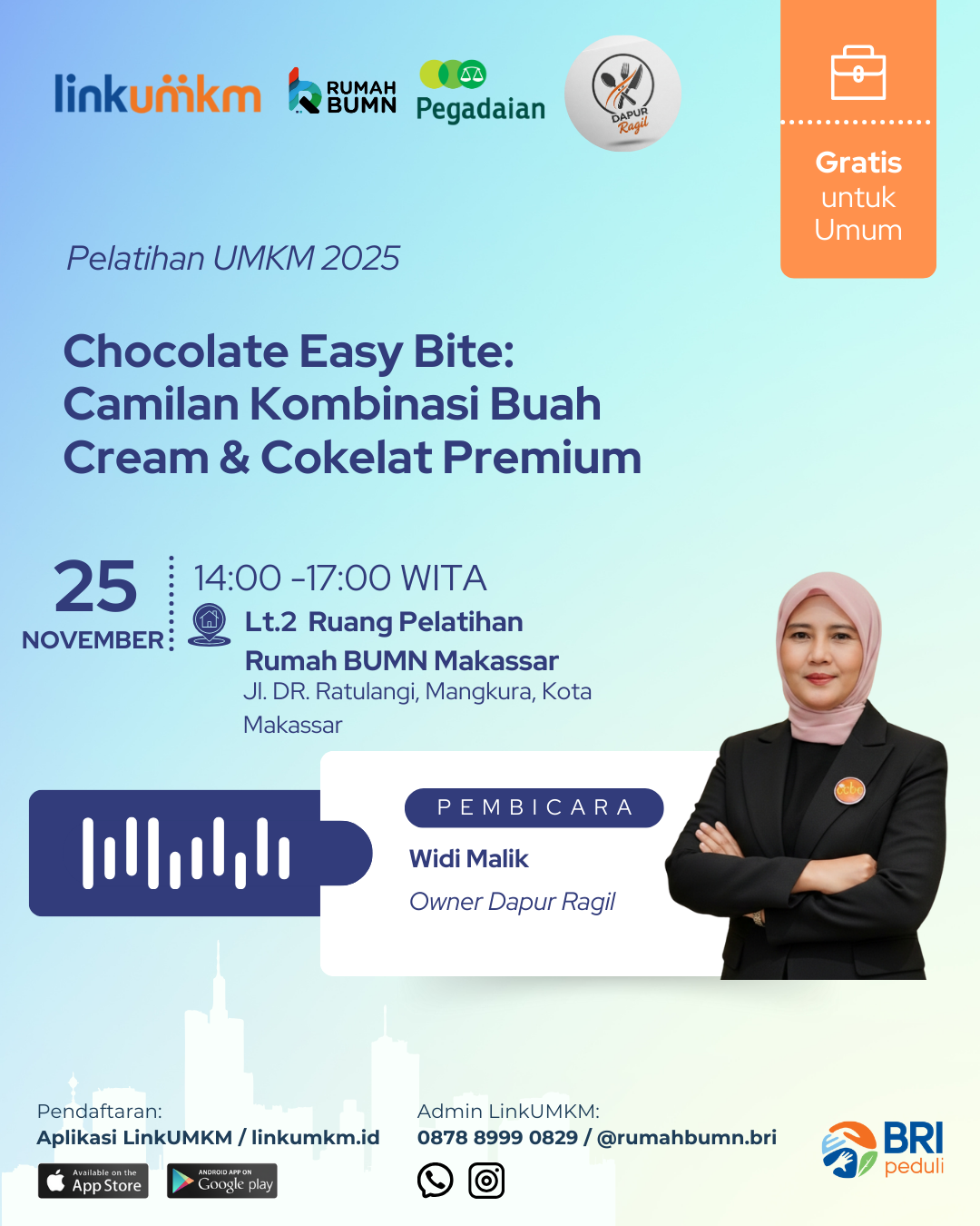 Tempat: Jl.Sam Ratulangi No.30 (Lt. 2 Rumah BUMN Makassar)