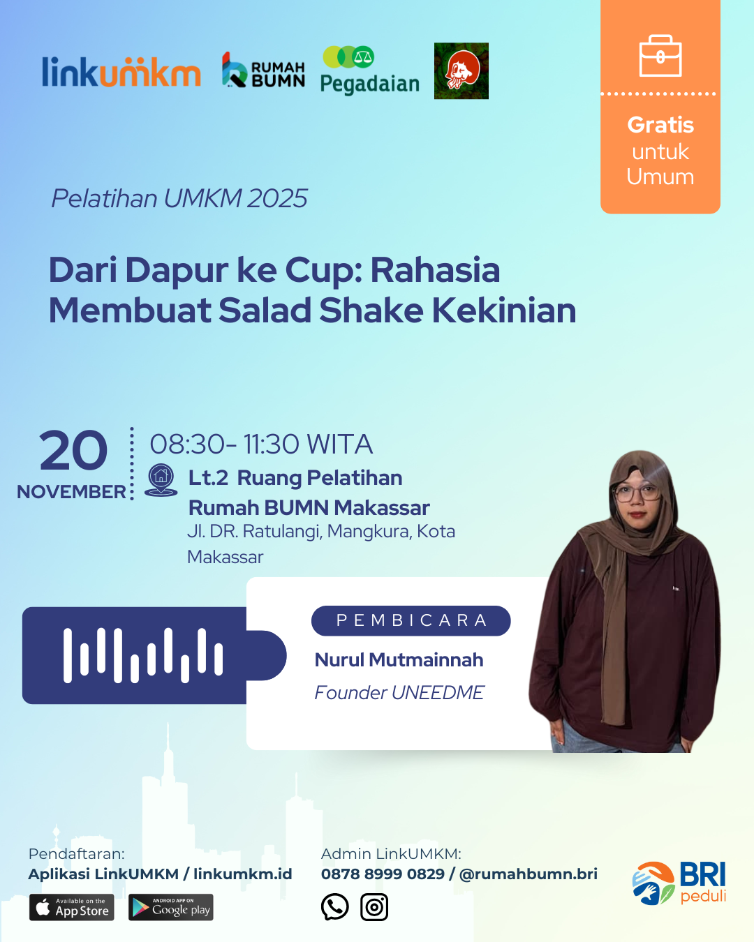 Tempat: Jl.Sam Ratulangi No.30 (Lt. 2 Rumah BUMN Makassar)