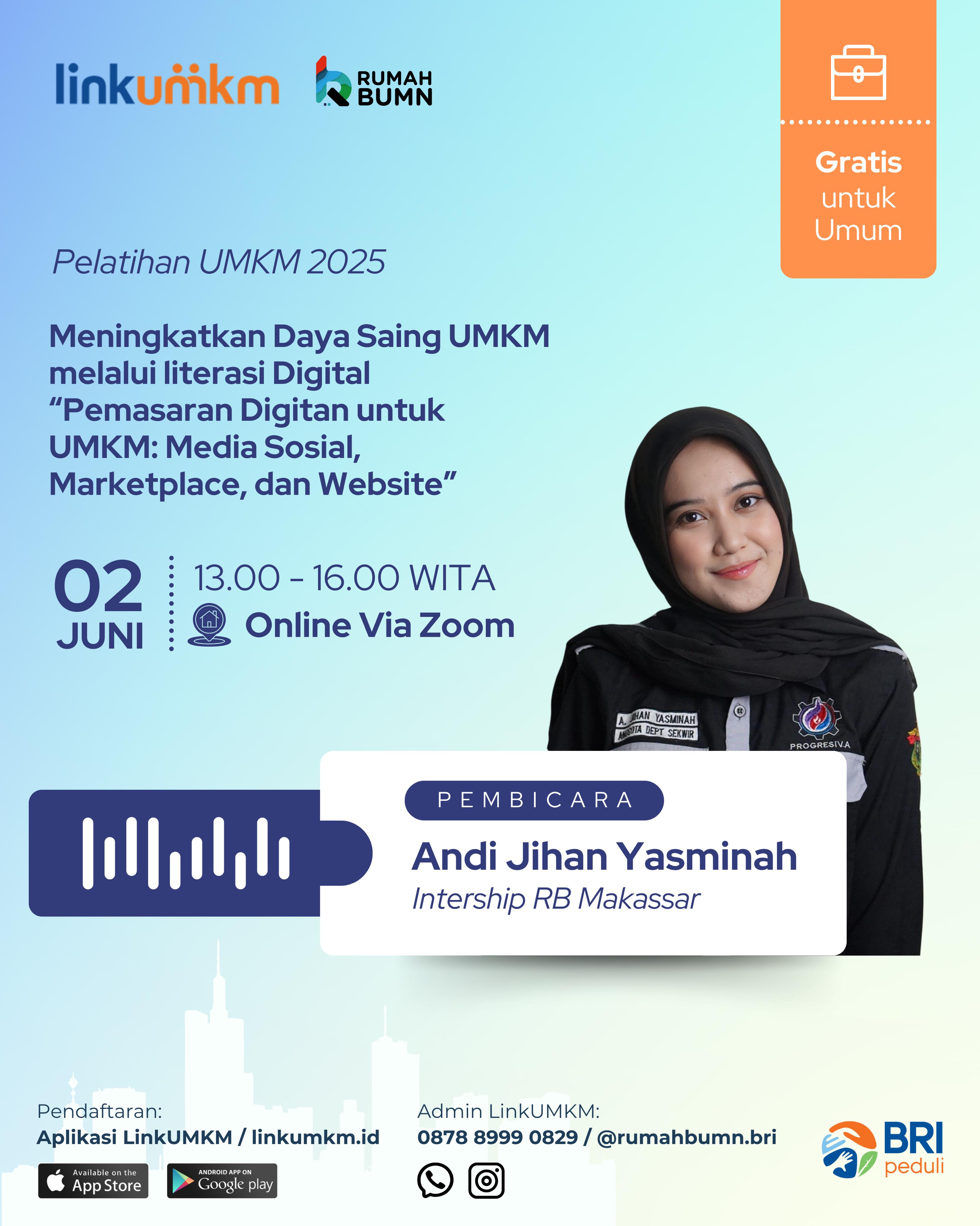 Tema Pelatihan: Meningkatkan Daya Saing UMKM melalui literasi Digital “Pemasaran Digitan untuk UMKM: Media Sosial, Marketplace, dan Website”