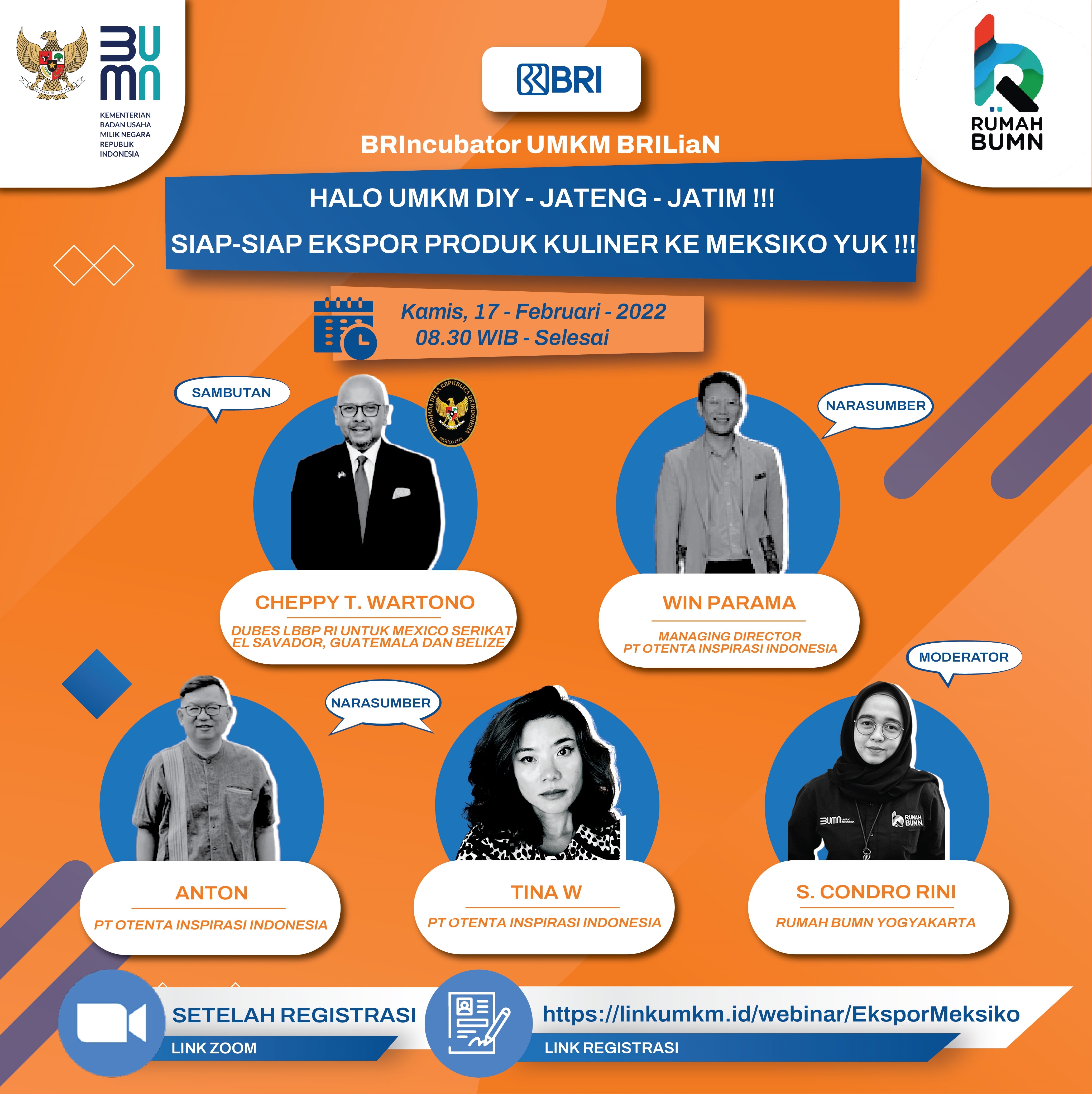 Yuk semangat ikut kelas kurasi produk kuliner ekspor ke Mesiko, dengan narasumber sbb :