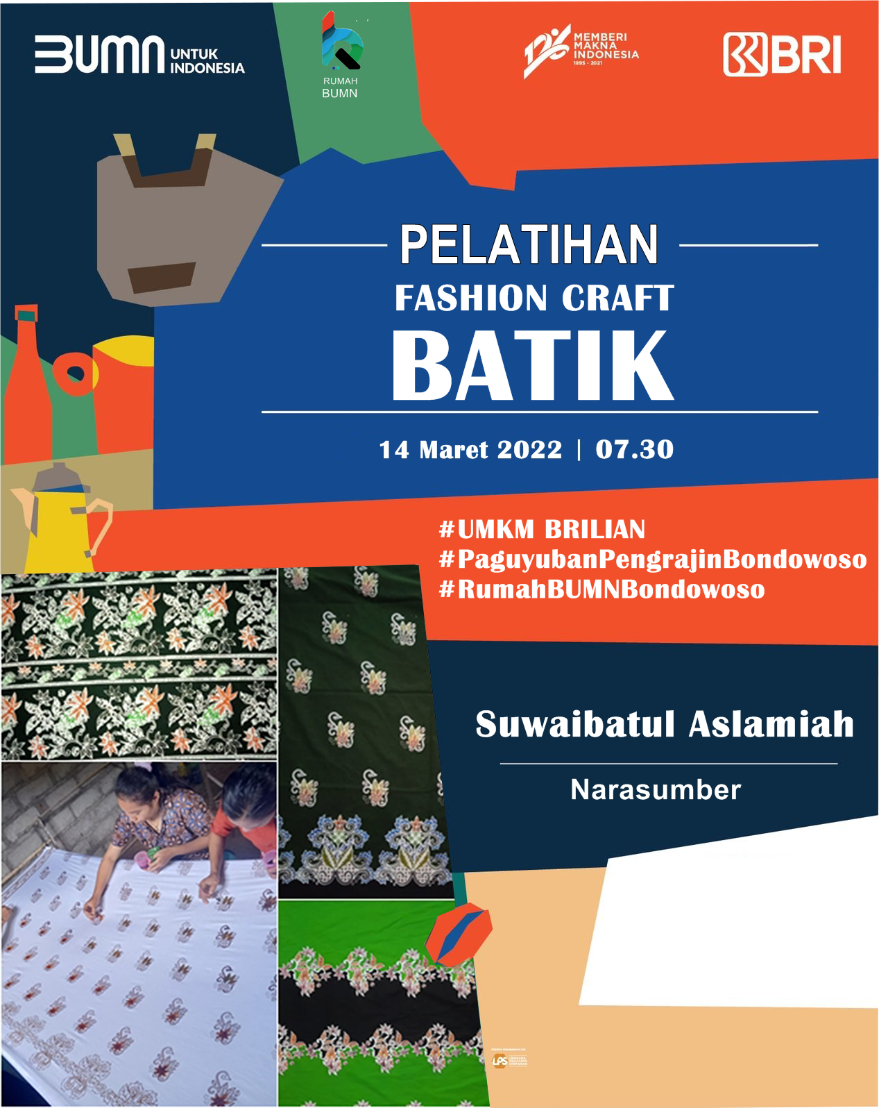 Pelatihan Tatap Muka dari Paguyuban Pengrajin Bondowoso dan Rumah BUMN BRI Bondowoso, dengan Topik FASHION CRAFT BATIK. (PRAKTEK)