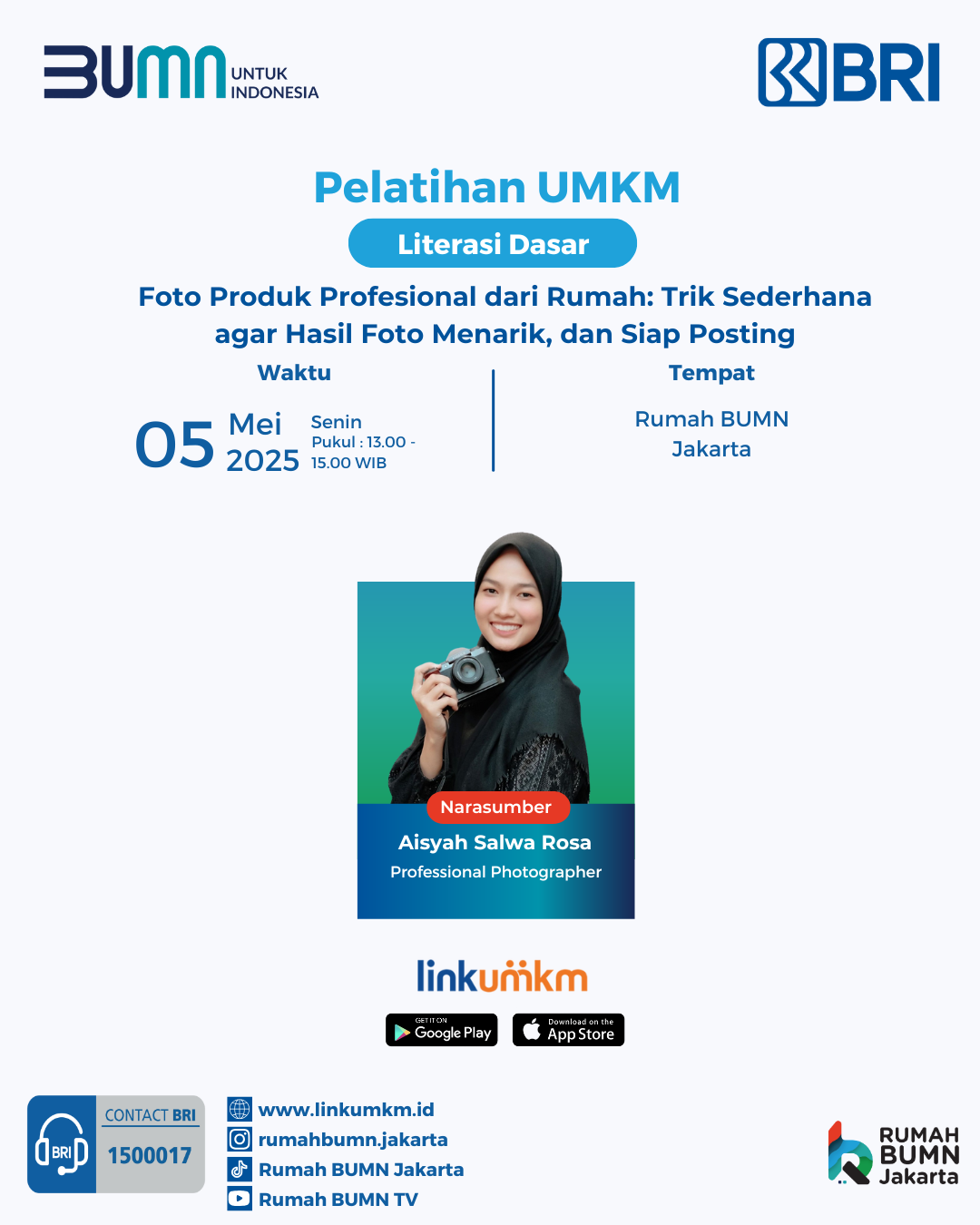 Judul: Pelatihan UMKM Literasi Dasar, Foto Produk Profesional dari Rumah: Trik Sederhana agar Hasil Foto Menarik, dan Siap Posting