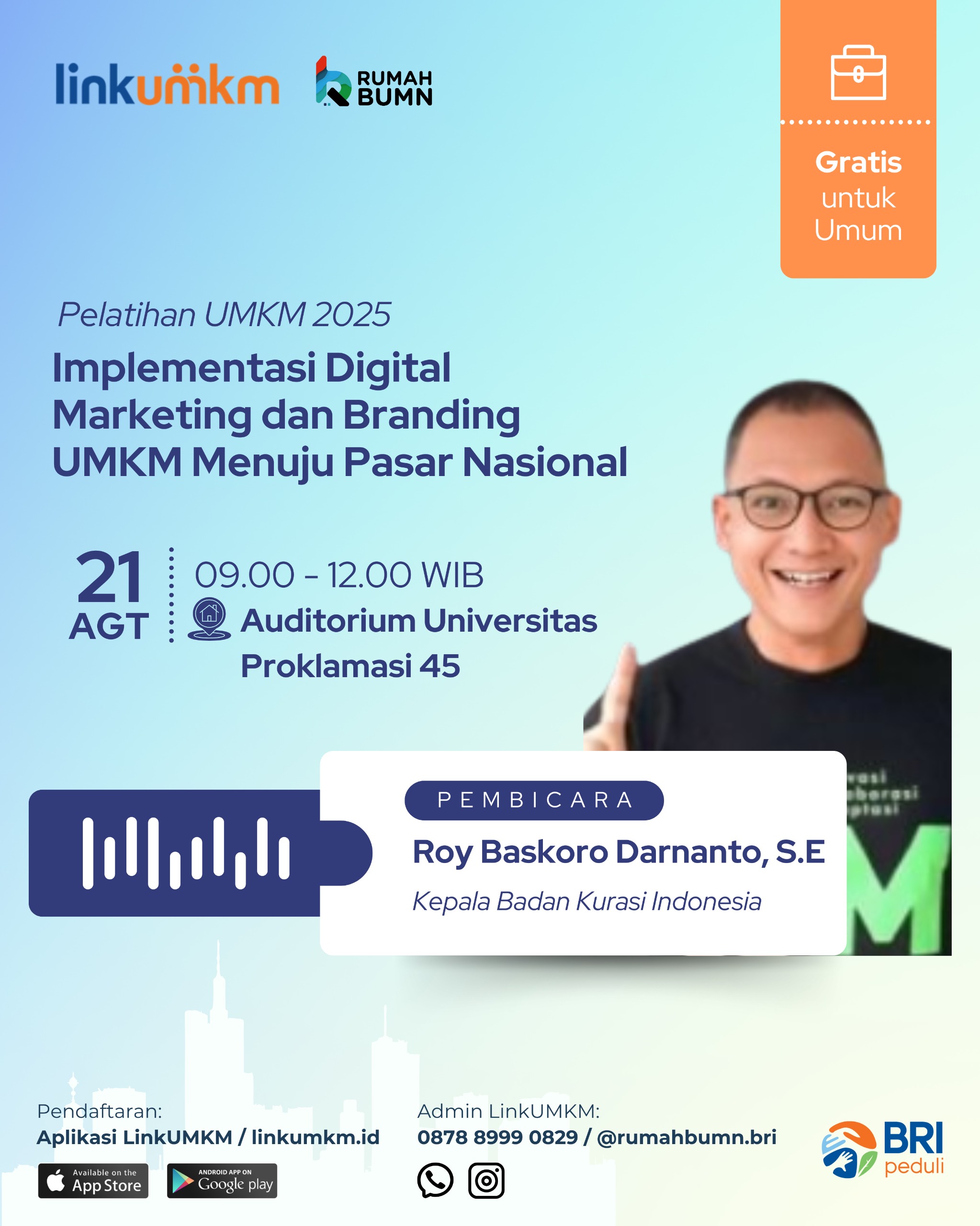 Platform Linkumkm (selanjutnya disebut “Platform”) adalah suatu situs jejaring sosial yang digunakan secara online atau menggunakan akses internet yang dibuat dengan tujuan agar membawa UMKM Indonesia naik kelas melalui rangkaian program pemberdayaan terpadu. LinkUMKM merupakan platform yang diselenggarakan oleh BRI Research Institute (BRIRINS) yang bekerjasama dengan PT Bank Rakyat Indonesia (Persero) Tbk. (selanjutnya disebut “Kami”) untuk mendukung pengembangan UMKM.