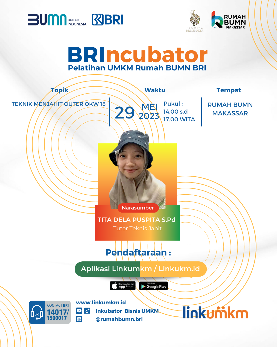 Rumah BUMN Makassar Berkolaborasi dengan Komunitas Jarum Benang Makassar / Lamenda Dress Maker akan melangsungkan kegiatan Pelatihan dengan tema